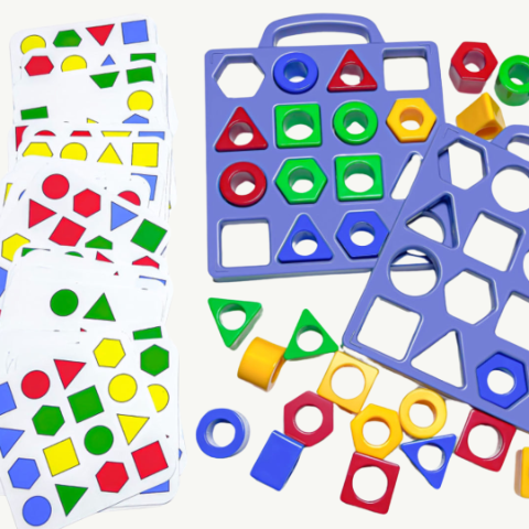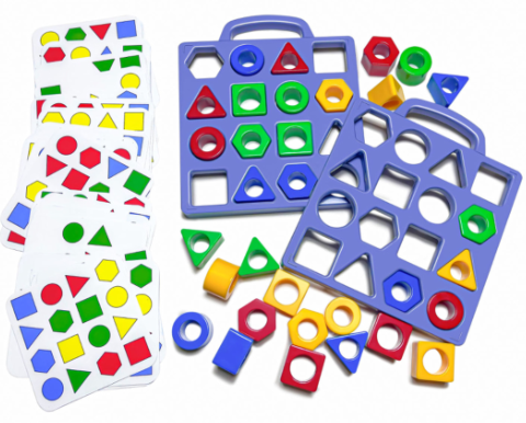 Setul include carduri ilustrate care ghidează copilul să recreeze modele și să dezvolte gândirea logică.