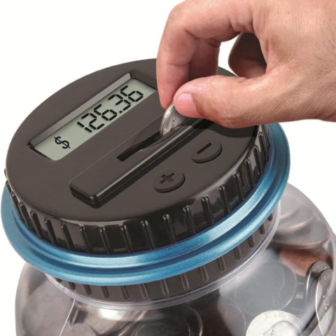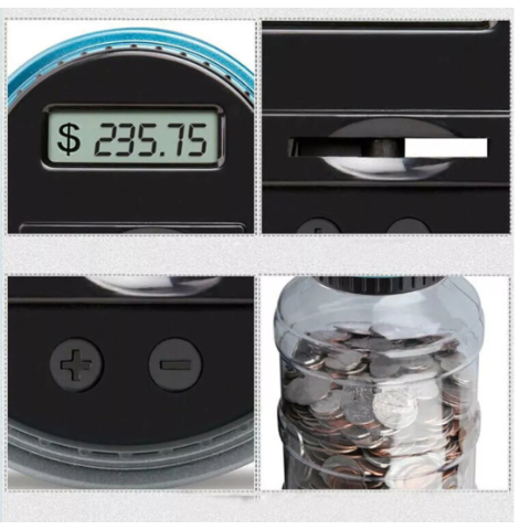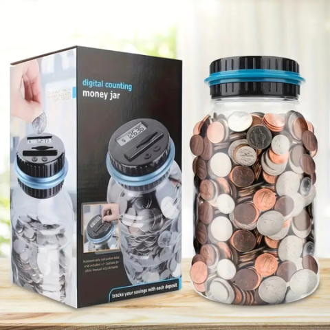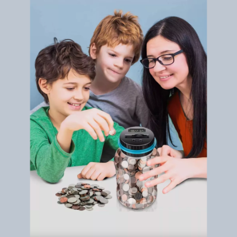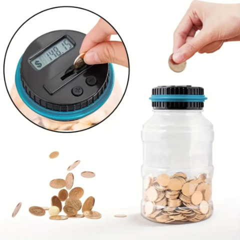Cu capacitatea de a număra monedele automat, această pușculiță face ca fiecare economisire să fie vizibilă pe ecranul digital.
