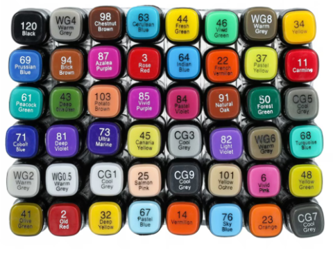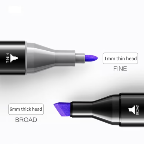 Fiecare marker are un design dublu vârf, cu capete subțiri pentru detalii fine și capete late pentru umplerea rapidă a suprafețelor mari.