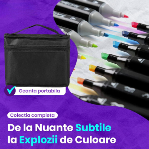 Fiecare marker este proiectat ergonomic pentru o utilizare confortabilă, iar geanta inclusă facilitează organizarea și transportul.