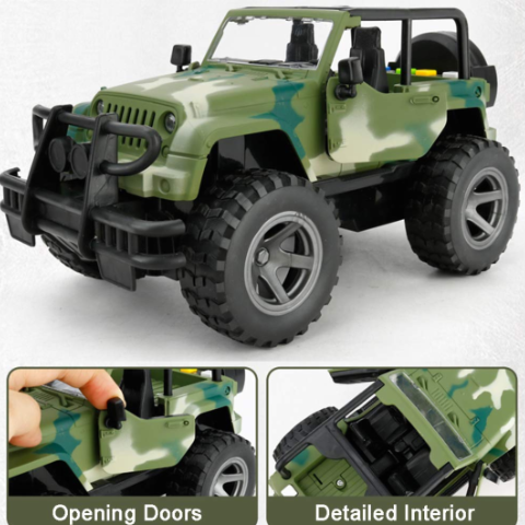 Descoperă aventura alături de Jeep-ul Off-Road Militar, o mașină de jucărie rezistentă, ideală pentru explorările de interior și exterior.