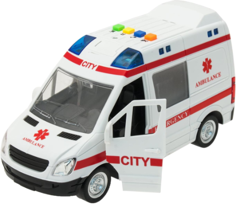 Ambulanța de Jucărie City Rescue, realizată la scară 1:16, îi introduce pe cei mici în lumea salvatorilor de vieți, cu un design realist și detalii atent finisate.