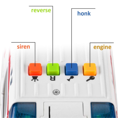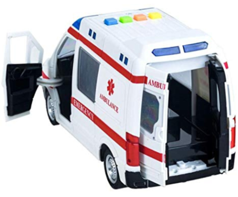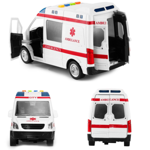 Ambulanța funcționează pe bază de fricțiune, fiind ușor de pus în mișcare de către copii, fără baterii suplimentare.