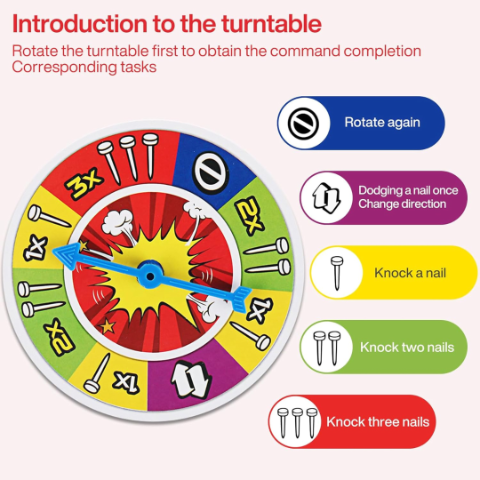 Fiecare jucător își testează norocul și îndemânarea rotind ruleta, care dictează câte cuie să bată în cutie.