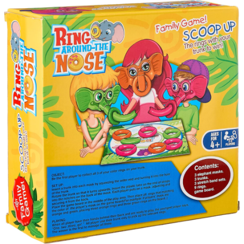 Ring Around the Nose este un joc interactiv și amuzant pentru copii și părinți, ideal pentru petreceri și seri de familie.