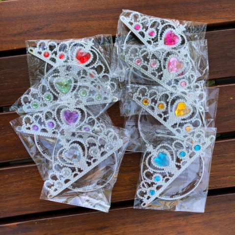 Coronița de prințesă aduce strălucirea regală în fiecare moment de joacă, având un design elegant cu inimioare centrale și pietre colorate care sclipesc fermecător la fiecare mișcare.