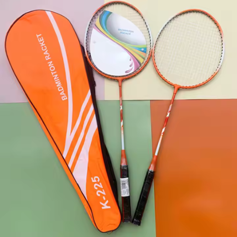 Descoperă un set de badminton versatil și rezistent, compus din două rachete portocalii și o geantă practică de transport, ideal pentru meciuri antrenante oriunde te-ai afla.