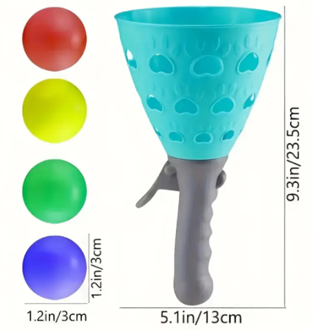 Fiecare lansator este echipat cu un mâner confortabil și un declanșator simplu de utilizat, care permite lansarea mingilor moi, sigure și ușor de prins.