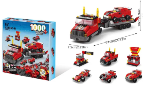 Descoperă setul de construcție „Echipa de Curse”, format din 1000 de piese viu colorate, perfect pentru micii pasionați de viteză și mașini sport.