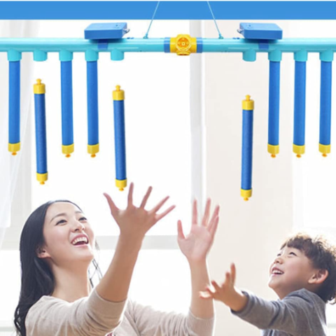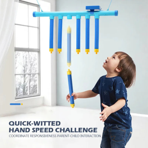 Sistemul inteligent de prindere eliberează bastoanele din suportul suspendat, provocând copiii să le prindă rapid și precis.
