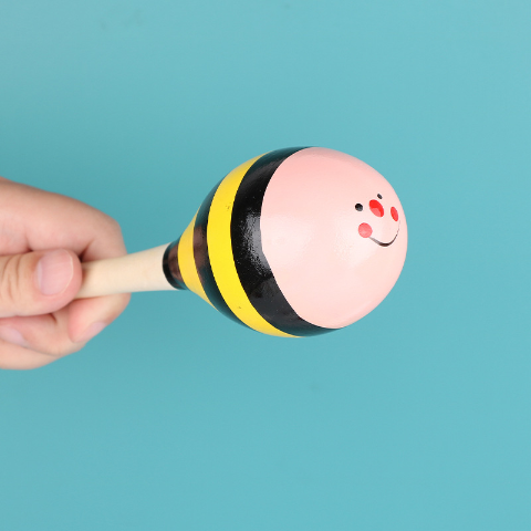 Fiecare maracas este pictat manual cu modele prietenoase, reprezentând buburuze, albinuțe și forme geometrice, care atrag instant atenția celor mici.