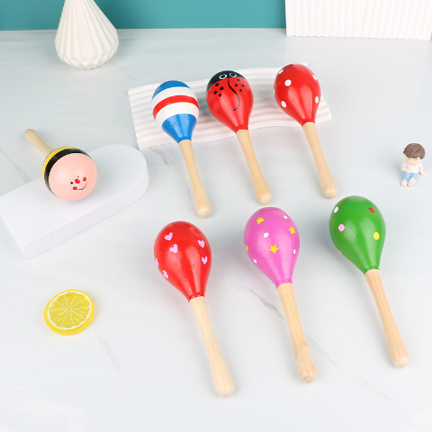Maracas-urile din lemn, cu o lungime de 20 cm, sunt concepute special pentru mâinile mici ale copiilor și oferă o experiență muzicală plină de culoare și veselie.