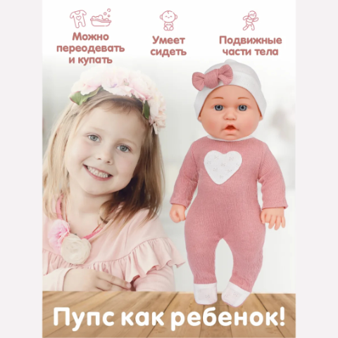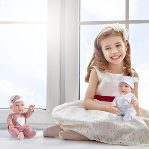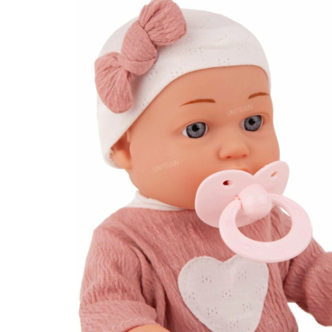 Descoperă farmecul îngrijirii unui bebeluș cu această adorabilă păpușă realistă, îmbrăcată într-un costumaș roz moale, decorat cu o inimioară albă.