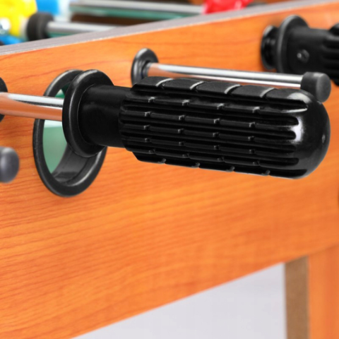 Mânerele rezistente și ergonomice le permit celor mici să controleze cu ușurință jucătorii pe terenul viu colorat.