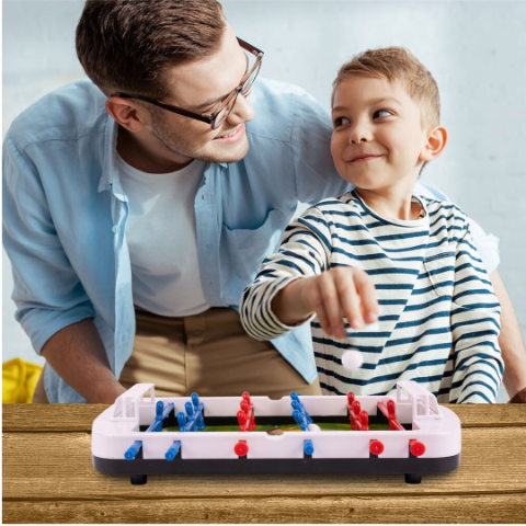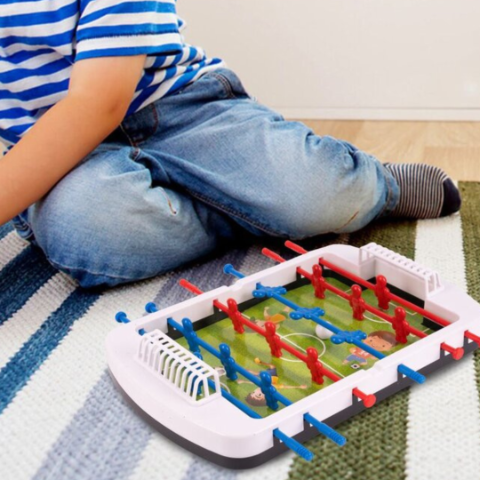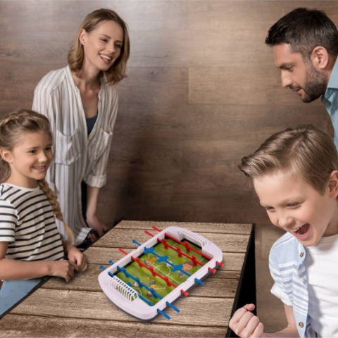 Cei mici își pot exersa coordonarea și reflexele prin rotirea rapidă a mânerelor pentru a marca goluri spectaculoase.