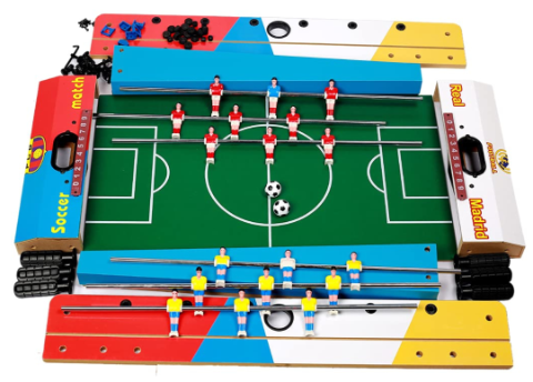 Cu două echipe colorate și mânere rotative ușor de manevrat, copiii pot simula meciuri reale și își pot antrena coordonarea ochi-mână în timp ce marchează goluri.