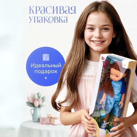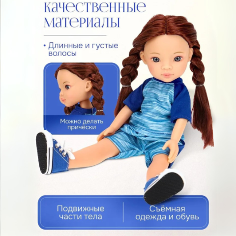 Cu o ținută sport modernă în albastru și pantofi comozi, păpușa inspiră mișcare și distracție activă.
