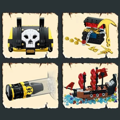 Designul modular permite demontarea și reconstruirea corăbiei ori de câte ori se dorește, iar tema piraților stimulează imaginația și jocul de rol.