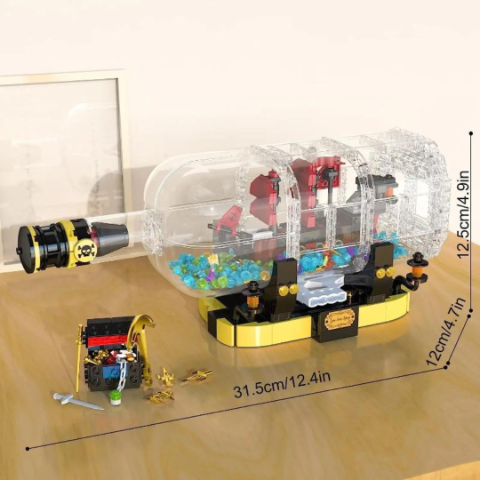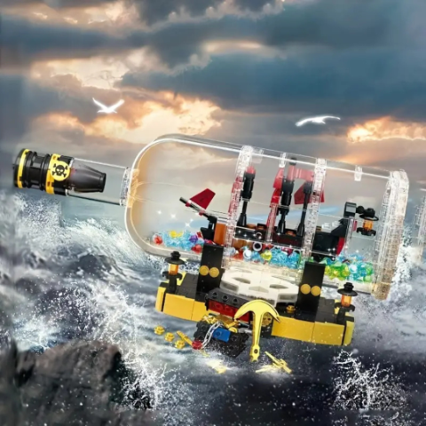 Descoperă o aventură spectaculoasă cu acest set de construcție „Corabie de Pirați în Sticlă”, o jucărie cu peste 850 de piese care le oferă copiilor ore întregi de creativitate.