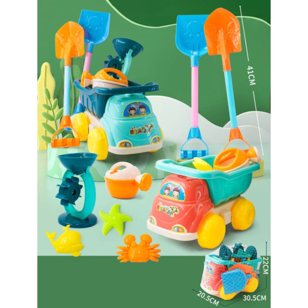Designul robust permite copiilor să transporte, să descarce și să sape în nisip cu uneltele incluse.