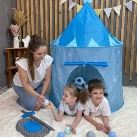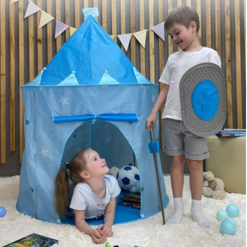 Cei mici își pot crea propriile povești de cavaleri și prințese, ascunzându-se, citind sau jucându-se cu jucăriile preferate în interiorul cortului.