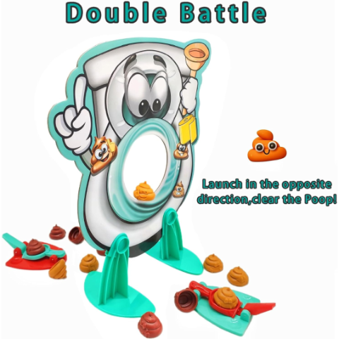 Setul include 12 figurine în formă de poop și două lansatoare, astfel încât copiii pot concura între ei în dueluri pline de energie.