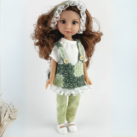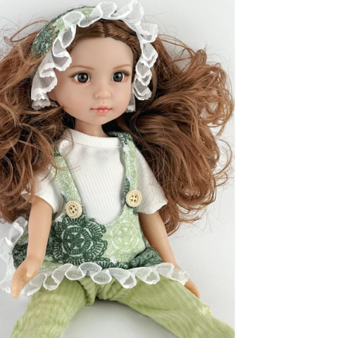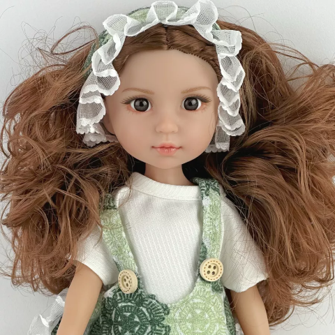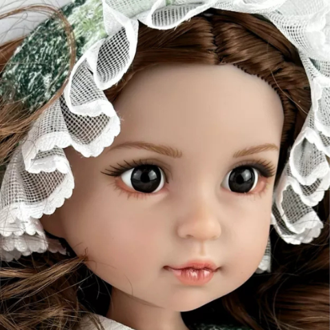 Privirea dulce și expresivă a păpușii inspiră tandrețe și povești pline de imaginație.