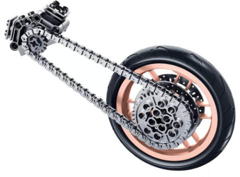 Lanțul funcțional și transmisia detaliată adaugă o notă de realism captivantă pentru micii constructori pasionați de motoare.