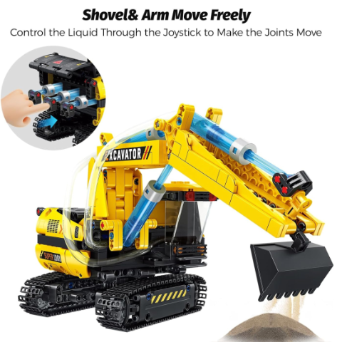 Cutia elegantă promite distracție și dezvoltare prin joacă STEM, atrăgând privirea cu brațul său hidraulic realist.
