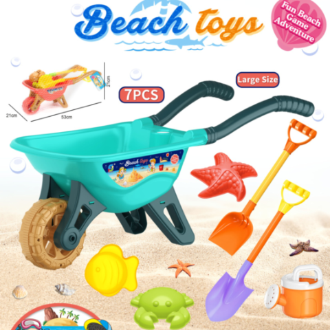 Transformă fiecare zi la plajă într-o aventură creativă cu acest set de 7 piese cu roabă mare, ideal pentru micii exploratori. Cu dimensiuni generoase – 53 cm lungime, 21 cm lățime și 21 cm înălțime – roaba este perfectă pentru transportul nisipului, jucăriilor și formelor direct pe "șantierul" de joacă.