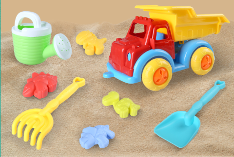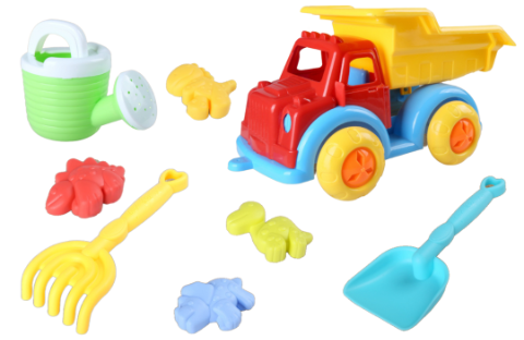 Setul conține un camion basculant, o lopățică, o greblă, o stropitoare și 4 forme amuzante cu tematică marină și animaluțe. Fiecare piesă este realizată din plastic rezistent, non-toxic, cu margini rotunjite și culori vibrante, oferind siguranță și distracție în aer liber.