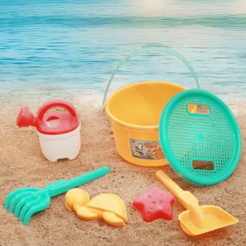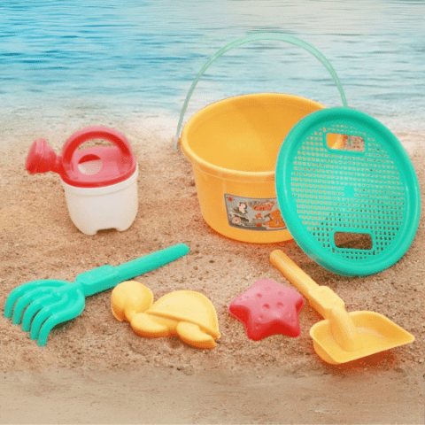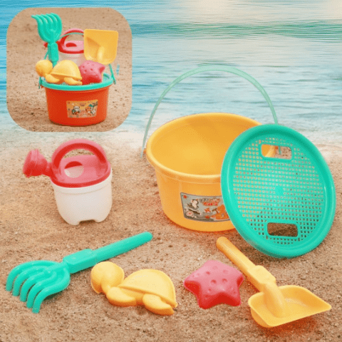 Găletușa de nisip cu mâner este ușor de transportat și perfectă pentru aventurile la plajă sau în nisipul din parc.