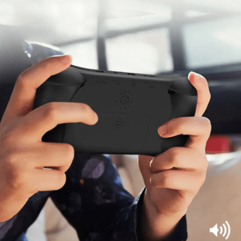 Fie că ești în călătorie sau acasă, consola stă perfect în mâini și are difuzoare de calitate pentru sunet clar.