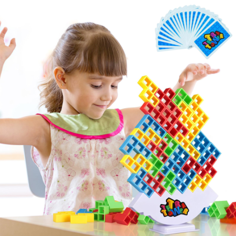 Cu forme geometrice inspirate din celebrul joc Tetris, piesele viu colorate se îmbină într-un joc de strategie și precizie.
