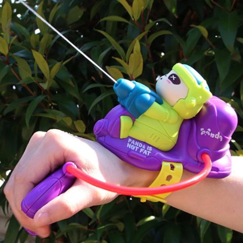 Transformă joaca de vară într-o aventură spectaculoasă cu această brățară cu pulverizator de apă în formă de panda pe scuter, care se prinde ușor pe mână și este gata de acțiune imediat.
