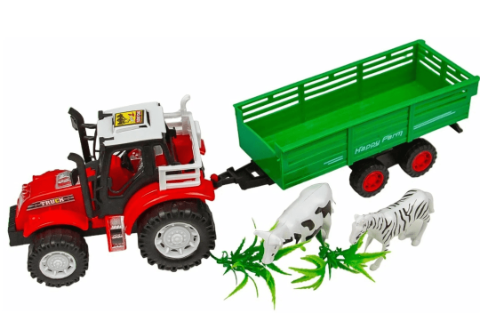 Tractorul roșu cu design realist și roți mari este pregătit pentru aventuri agricole pline de imaginație.