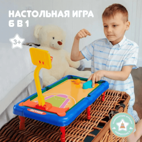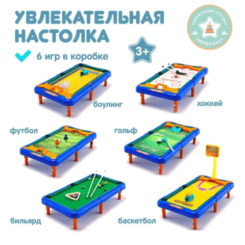 Descoperă un set interactiv care transformă fiecare zi într-o aventură sportivă – masa de jocuri 6 în 1 pentru copii include fotbal, baschet, hochei, golf, biliard și bowling, perfect adaptate pentru cei mici.