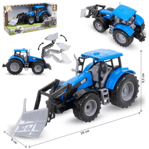 Tractorul de jucărie fermă atrage atenția prin detaliile realiste și dimensiunea de 26 cm, ideal pentru jocuri de construcție și agricultură.