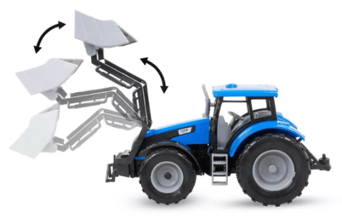 Mecanismul mobil al cupei frontale permite ridicarea și coborârea, imitând perfect utilajele agricole reale.