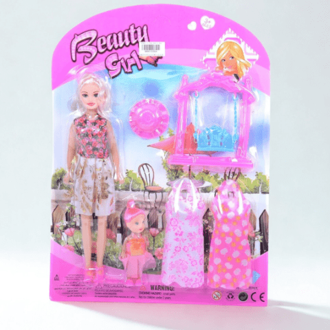 Setul Beauty Girl include o păpușă elegantă, îmbrăcată într-o rochie florală, pregătită pentru joacă și povești pline de imaginație.