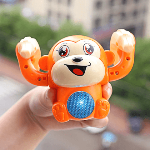 Maimuțica interactivă colorată aduce distracția la viață prin designul prietenos și expresiile vesele.