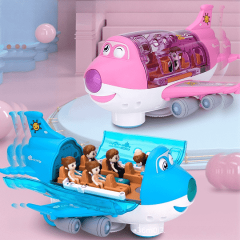 Avionul interactiv cu design prietenos captează imediat atenția copiilor prin culorile vii și cabinele transparente care dezvăluie interiorul plin de surprize.