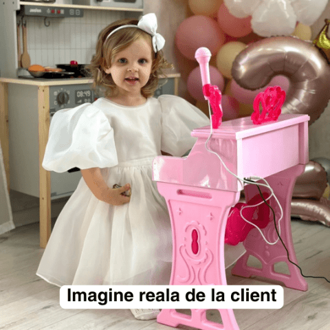 Pianul roz cu microfon este cadoul perfect pentru a dezvolta pasiunea pentru muzică și creativitate.