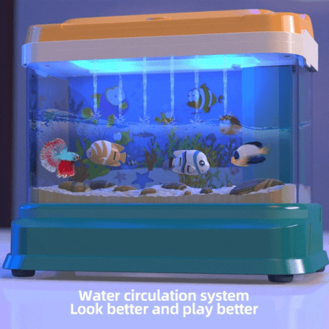 Acvariul colorat cu pești magnetici le permite copiilor să se joace la pescuit chiar în casă.