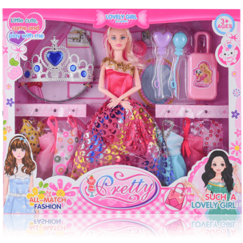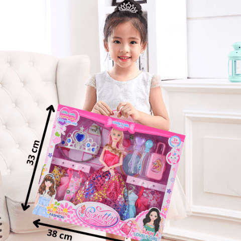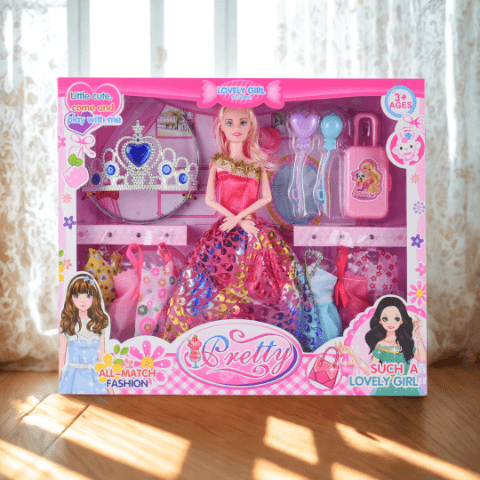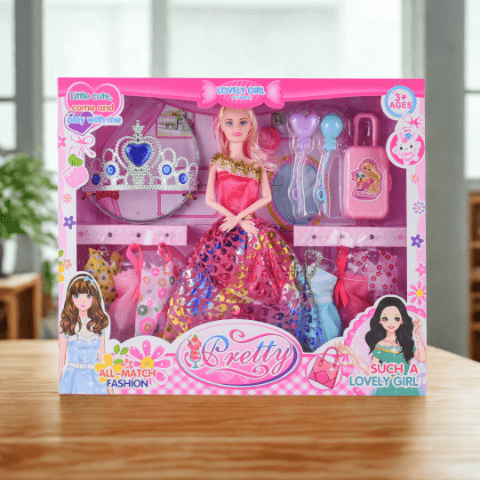 Accesoriile suplimentare, precum geanta, pantofii și ustensilele de modă, completează perfect garderoba păpușii.