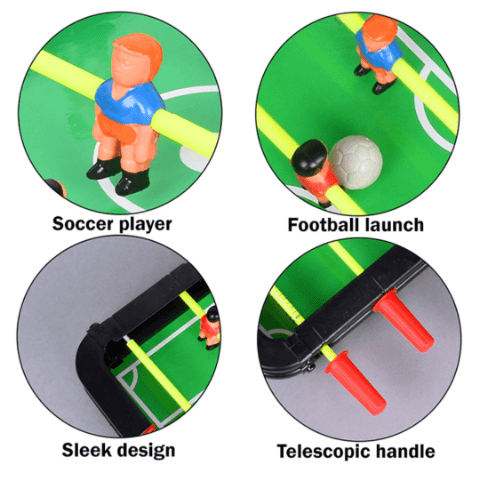 Acest set de fotbal de masă aduce emoția stadionului direct în casă, oferind copiilor șansa să joace meciuri captivante în orice moment.