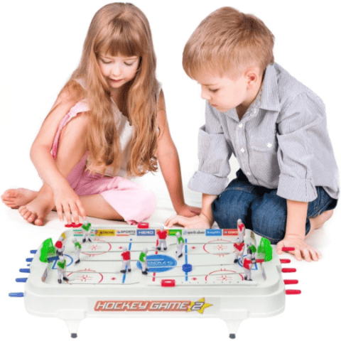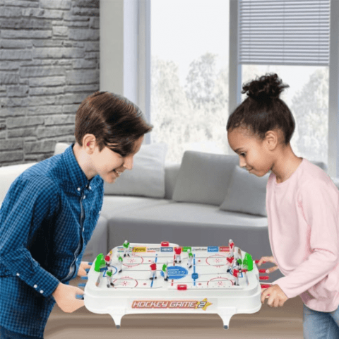 Jocul de hockey de masă aduce emoția competițiilor reale direct în casă, oferind copiilor o experiență interactivă și captivantă.
