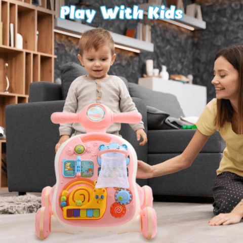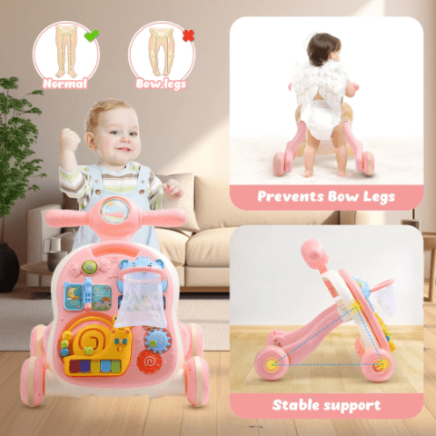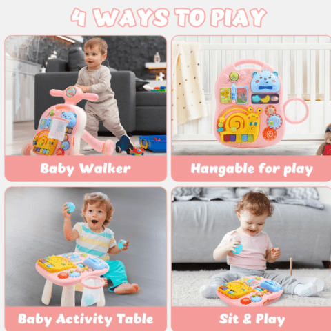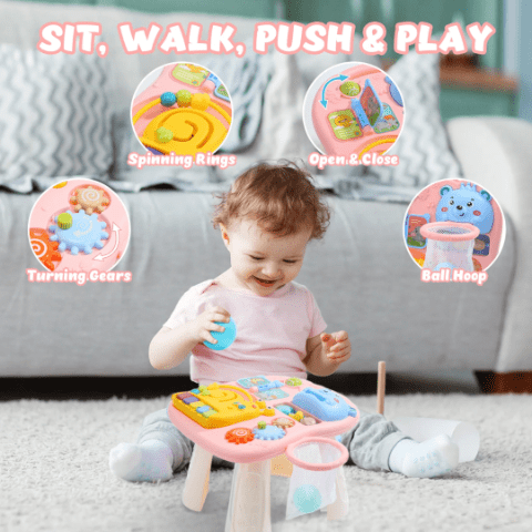 Premergător Muzical 3-în-1 pentru Bebeluși | Activități Educative și Masă de Joacă - Roz