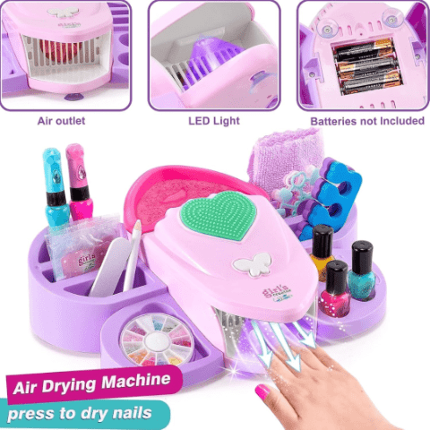 Uscătorul de unghii cu lumină LED și flux de aer uscat ajută la fixarea rapidă a ojei, asemenea unui salon adevărat.