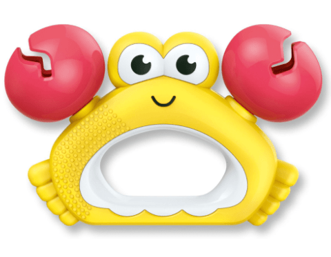 Crabul galben cu clești roșii este ușor de prins și scoate sunete amuzante la mișcare, stimulând simțul auditiv.